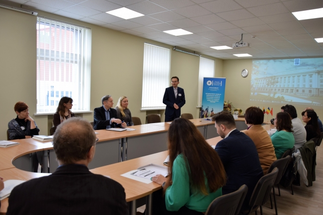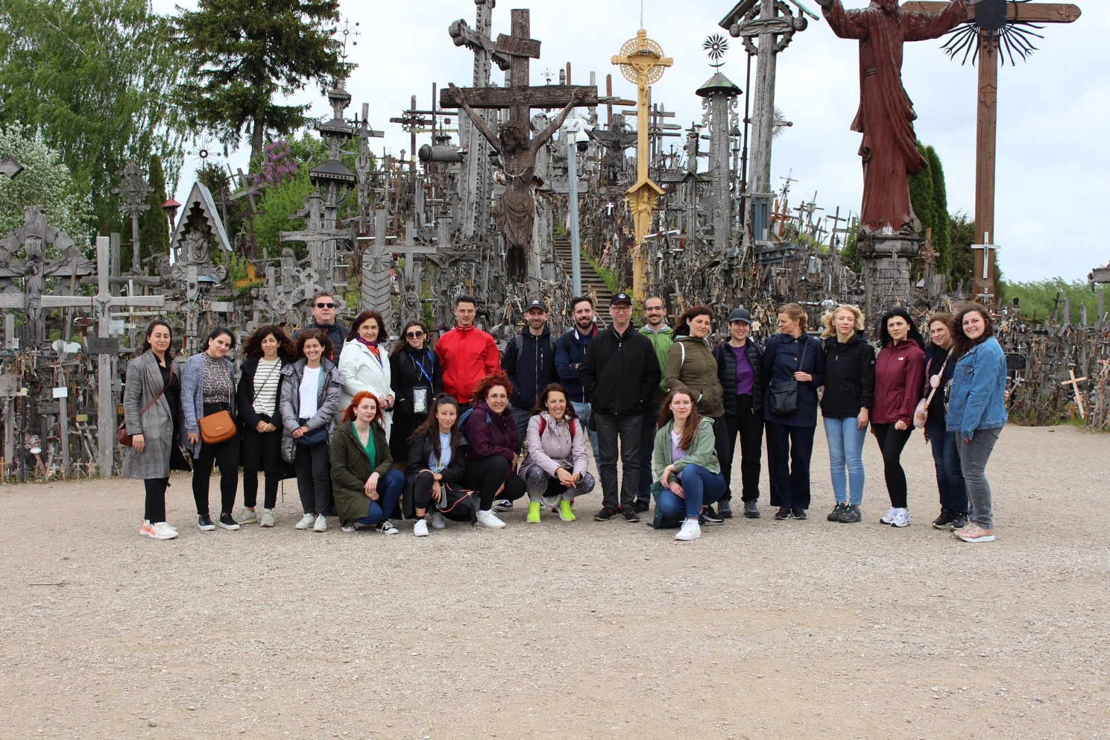 On the second day of the International Week, the participants had a trip to the Hill of Crosses. And the third day was dedicated to meetings in departments. All participants chatted with representatives of each department, viewed the study bases, discussed further cooperation, etc.