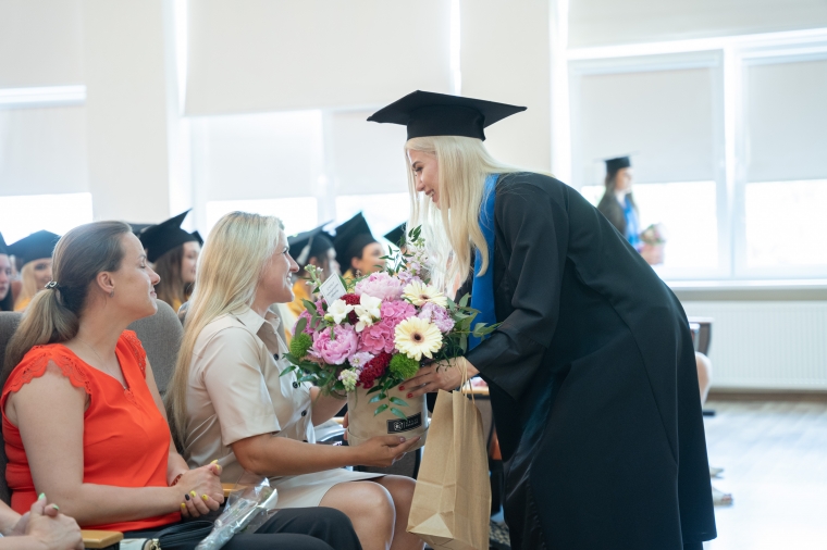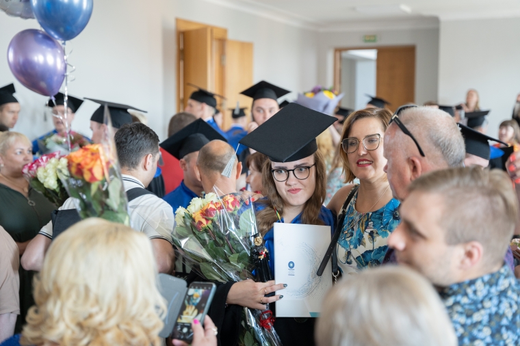 The total number of this year graduates is 337. 210 students graduated from the Faculty of Business and Technologies, 9 received diplomas with honours. 127 students graduated from the Faculty of Health Care. 46 studied General Practice Nursing and were awarded diplomas in January. Studies with honours were also completed by 9 students in this faculty. There were 195 students in full-time studies and 142 in part-time studies.