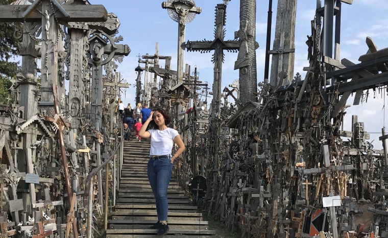 Students played this game throughout the whole autumn semester. The goal was to take 20 photos in different places in Šiauliai city. Students had to take a selfie with their favourite teacher as well. For all 20 pictures, students got a prize – cup, with Šiauliai State University of Applied Sciences and Erasmus+ logos. For a bonus selfie in the Hill of Crosses, students were able to get additional prizes.