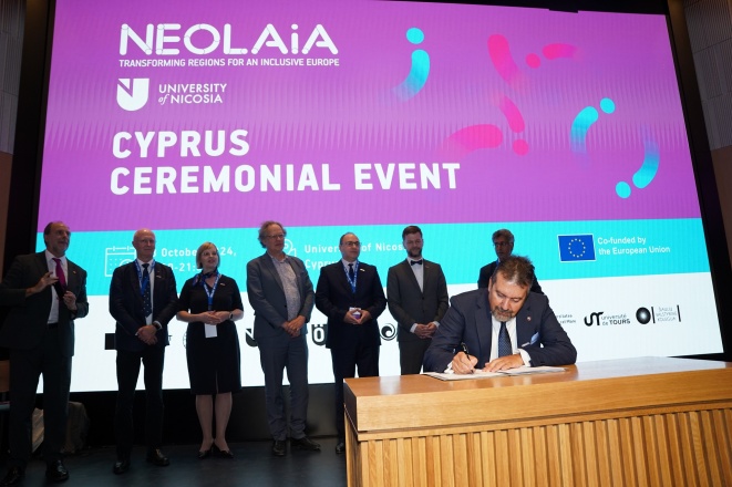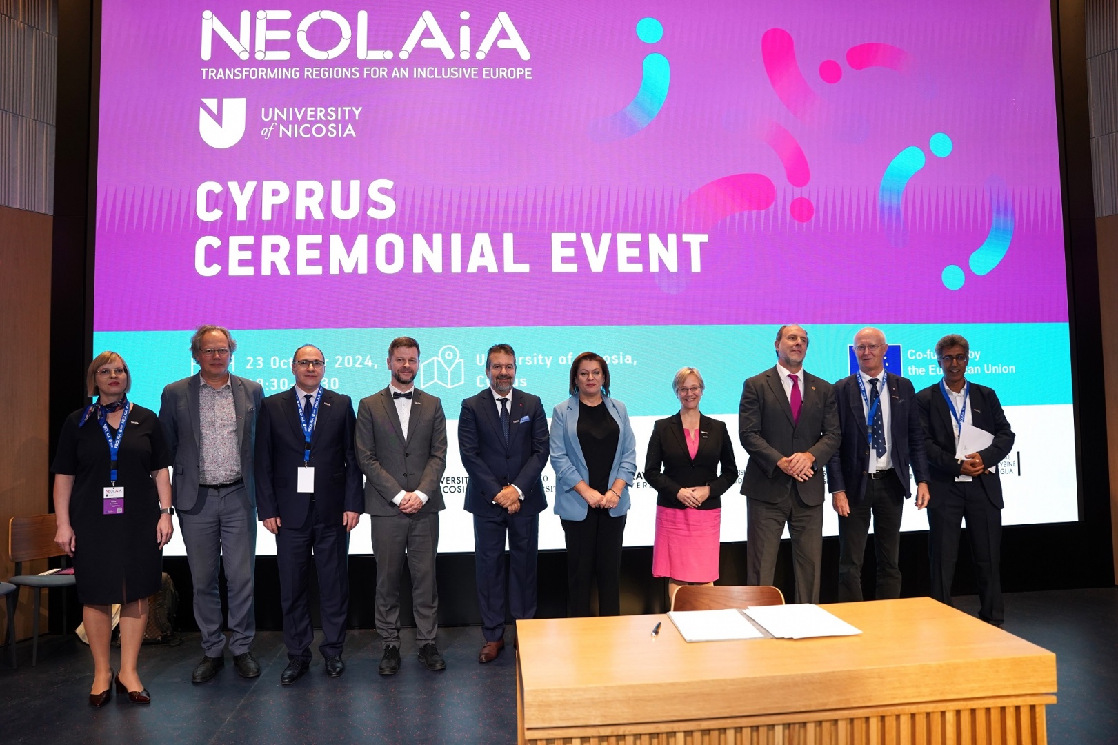 From 23 to 25 October, 2024, representatives from nine partner universities – Bielefeld University (Germany), Örebro University (Sweden), Šiauliai State University of Applied Sciences (Lithuania), University of Jaén (Spain), University of Nicosia (Cyprus), University of Ostrava (Czech Republic), University of Tours (France), Ştefan cel Mare University of Suceava (Romania) and University of Salerno (Italy) gathered at the University of Nicosia in Cyprus to reflect on the progress of the European Universities Alliance NEOLAiA over the last ten months.