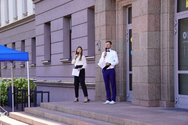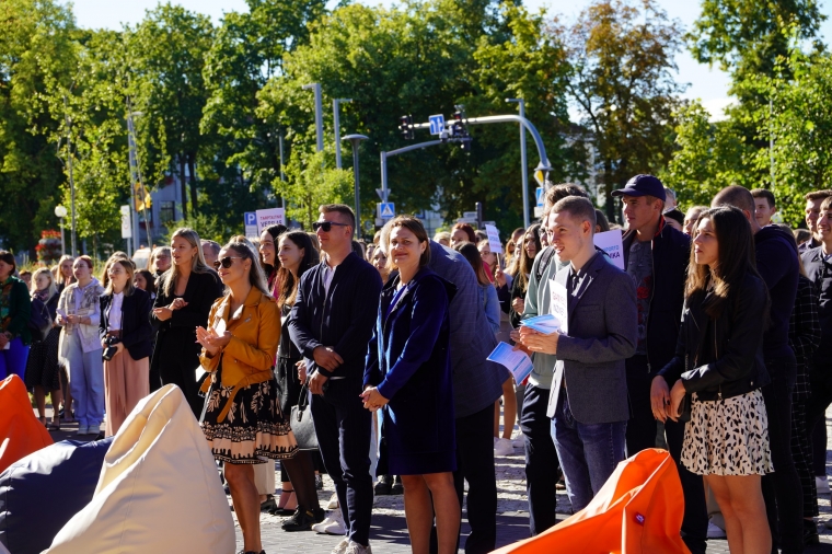 The opening event of the academic year was hosted by UAS alumni. Everybody took part in the flash quiz and got prizes with the attributes of Šiauliai State University of Applied Sciences. The festive atmosphere was continued by the songs performed by Audronė Bagūnaitė, a student of the Organization Communication and Marketing study programme.