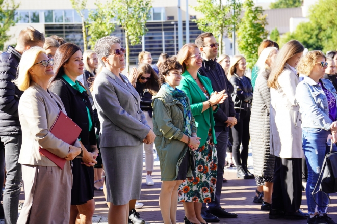 The head of the higher education institution Dr. Lina Tamutienė welcomed the UAS community and guests to the solemn event and emphasized that Šiauliai State University of Applied Sciences is proud to carry out multidisciplinary studies in the region, focused on practical activities, fostering contacts with employers and patrons while successfully strengthening links between studies and science. This year more than 600 freshmen are starting their studies at the UAS, thus in total about 1500 students will study together with almost 40 Erasmus+ students.