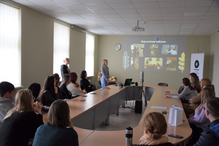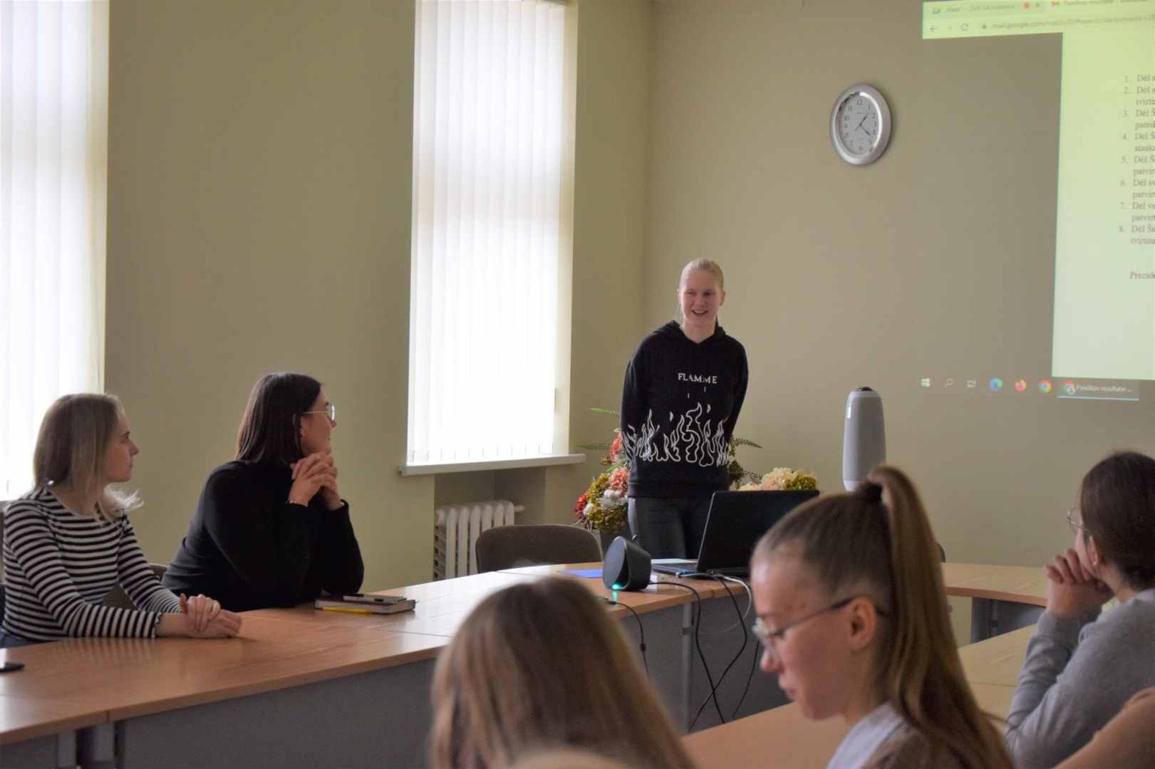 Skaistė Kairytė, a former president, presented the works done and transferred her responsibilities to Viktorija Valaitytė, a student of the Construction Study Programme.