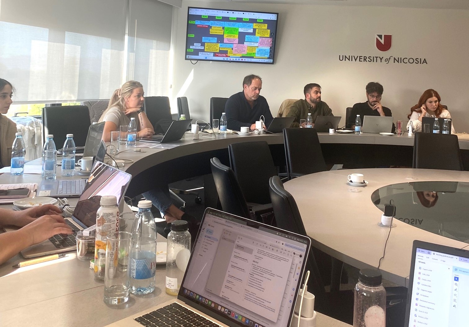 Susitikime Nikosijoje vyko intensyvios dirbtuvės, renginių, mokymų NEOLAIA universitetų administracijos darbuotojams ir studentams mentoriams turinio planavimas.