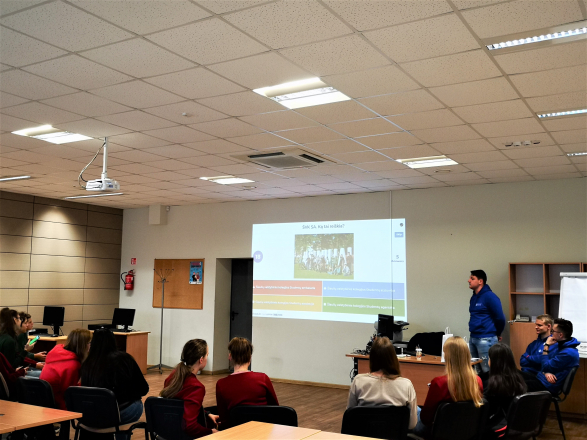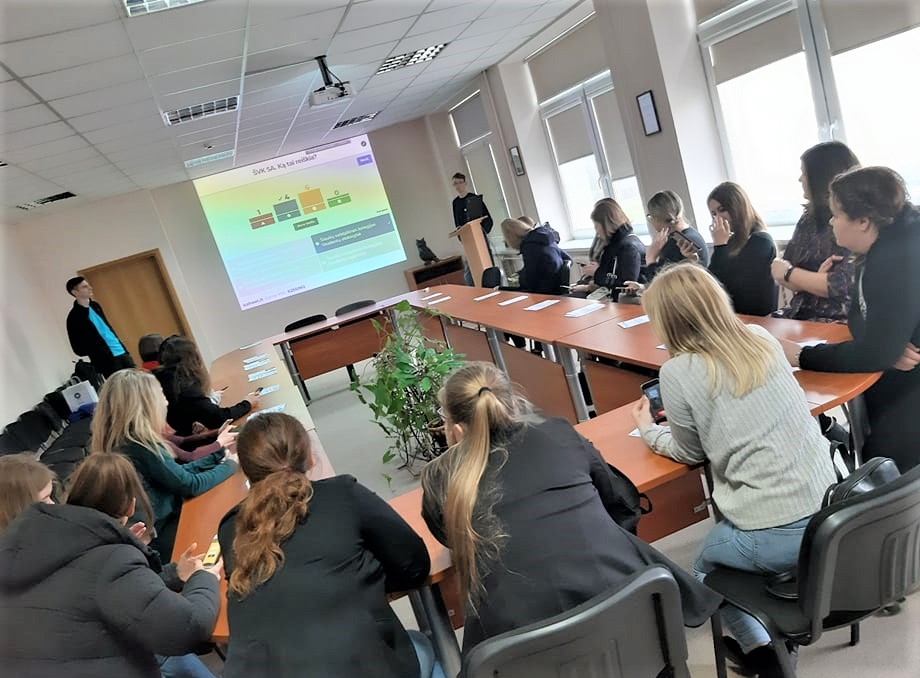Žaidžiant interaktyvų žaidimą, kurį vedė Šiaulių valstybinės kolegijos Studentų atstovybės nariai, mokiniams buvo pateikta įdomių faktų apie mūsų aukštąją mokyklą.