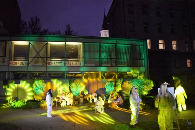 Projekto veiklų kulminacija vyko Šiaulių valstybinės kolegijos vidiniame kiemelyje – Organizacijos komunikacijos ir rinkodaros specialybės II kurso studentai pristatė meninį performansą, kuriame susijungė vaizdas ir garsas. Organizatoriai dovanojo renginio dalyviams puikių emocijų.