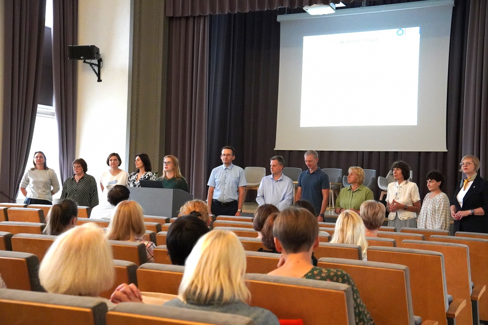 Akademinės tarybos pirmininkė dr. Lina Garšvė kalbėjo apie šios tarybos veiklą 2022–2023 studijų metais, padėkojo komandai už nuveiktus darbus.