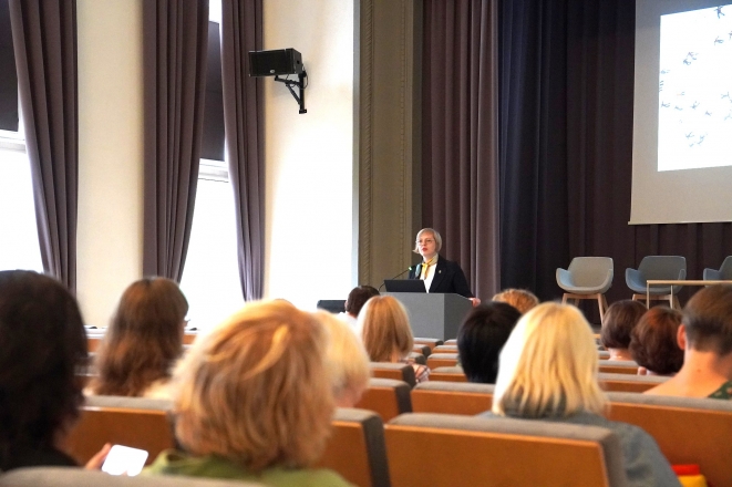 Kolegijos direktorė auditoriją supažindino su šių metų bendrojo priėmimo rezultatais, kalbėjo apie kolegijų tinklo stiprinimo perspektyvas Šiaurės Lietuvos regione.