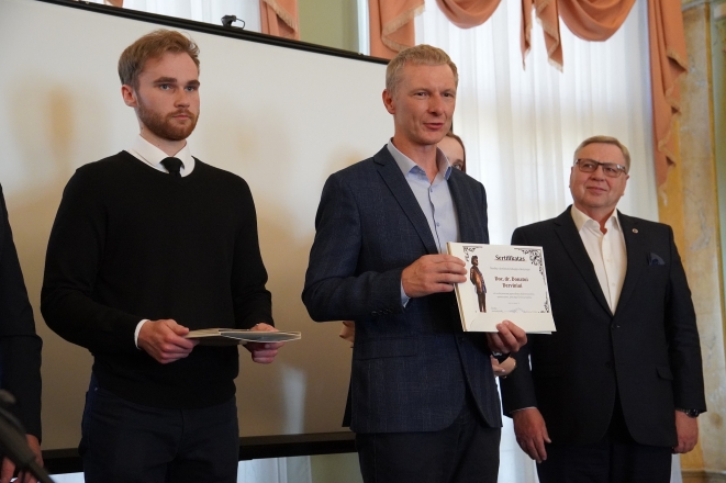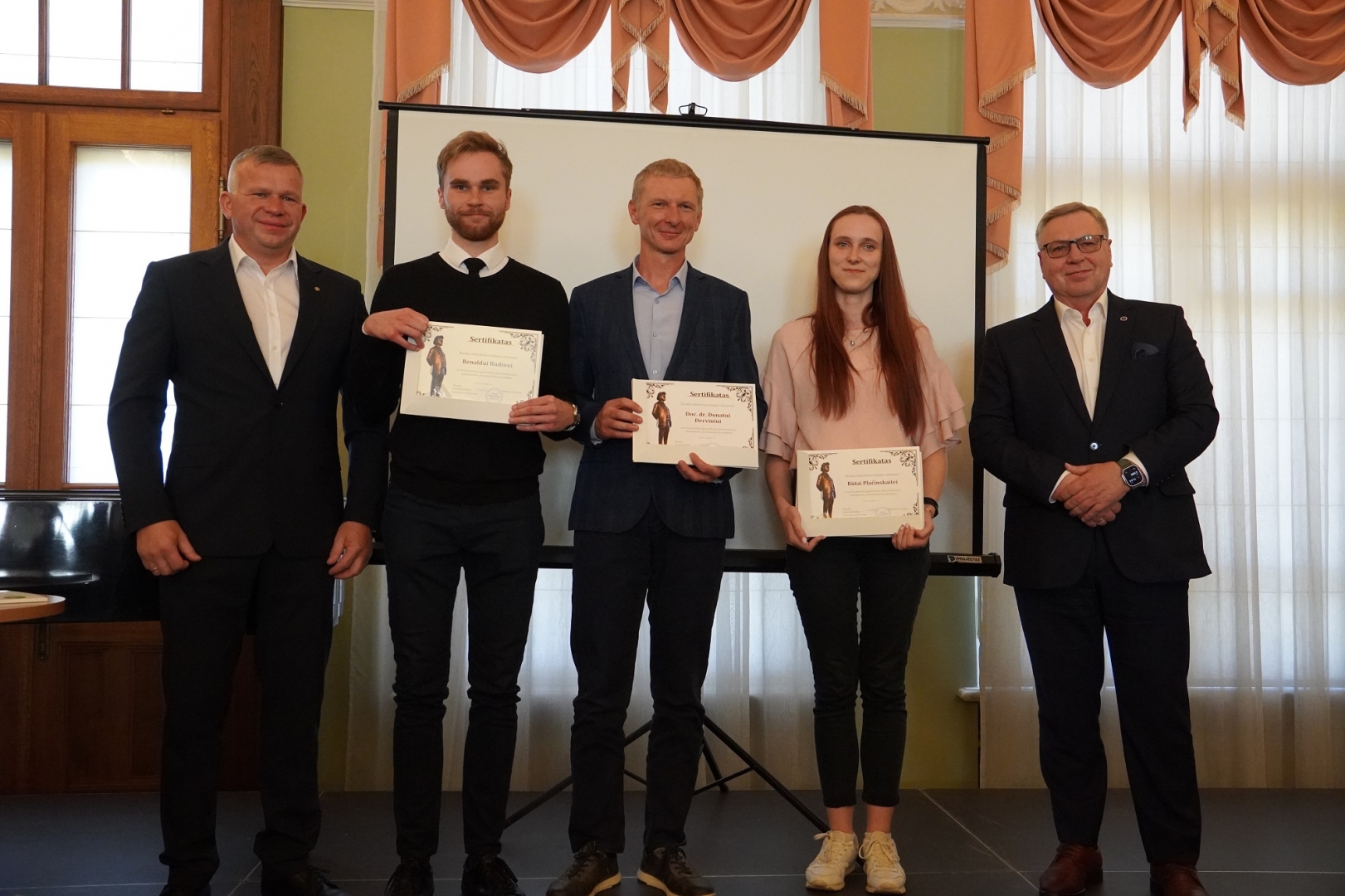 Padėkos už verslo įmonėms įgyvendintus projektus renginyje įteiktos Šiaulių valstybinės kolegijos dėstytojui doc. dr. Donatui Derviniui ir trims informatikos mokslų absolventams: