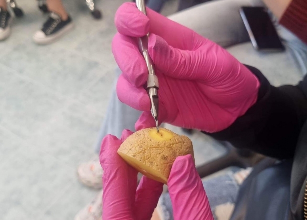 „Dėstytoja paruošė smagią praktinę dalį: visi studentai gavo bulvių, nuo kurių, naudodami skalpelį, turėjome pašalinti nelygumus, juos išpjaustyti taip, kaip reikėtų pjaustyti karpas“, – įdomų paskaitų turinį prisimena Agnė ir Emilė.