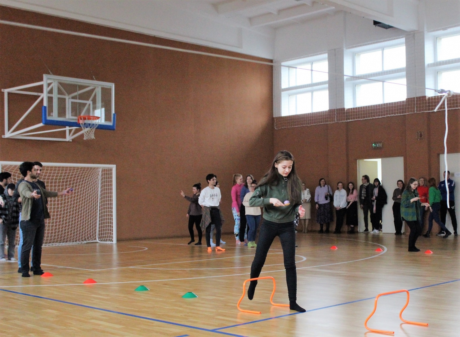 Po kiaušinių dažymo visi buvo pakviesti į estafetę, kurios metu studentų komandos turėjo šaukšte nešti kiaušinį ir įveikti įvairias kliūtis. Studentai išbandė ir margučių ridenimą. Šios rungties nugalėtoju tapo studentas iš Turkijos Enes.