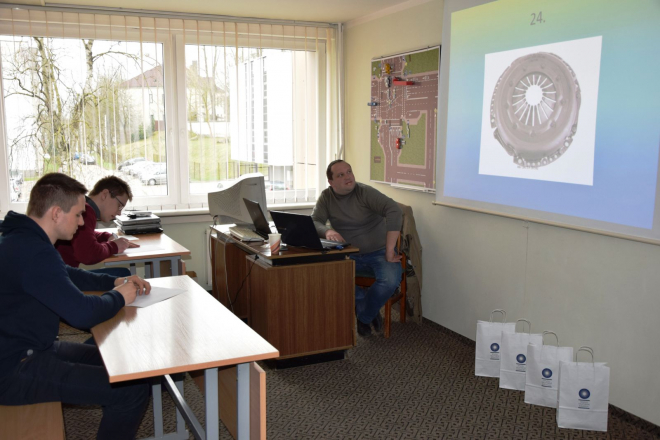 Studentų laukė kelių eismo taisyklių testas, reikėjo atpažinti automobilių junginius ir detales, atlikti automobilių techninės priežiūros teorines užduotis, diagnostiniu prietaisu patikrinti elektroninės valdymo sistemos būklę.