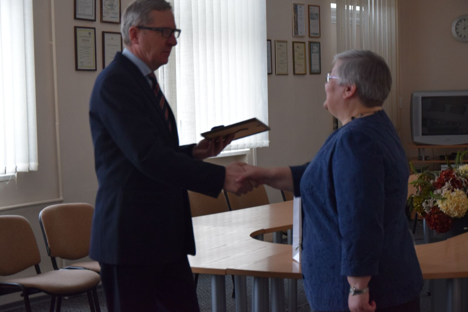 Šiaulių pramonininkų asociacijos prezidentas Alvydas Stulpinas įteikė A. Barysaitei „Profesijos riterio“ sertifikatą ir ženklą.
