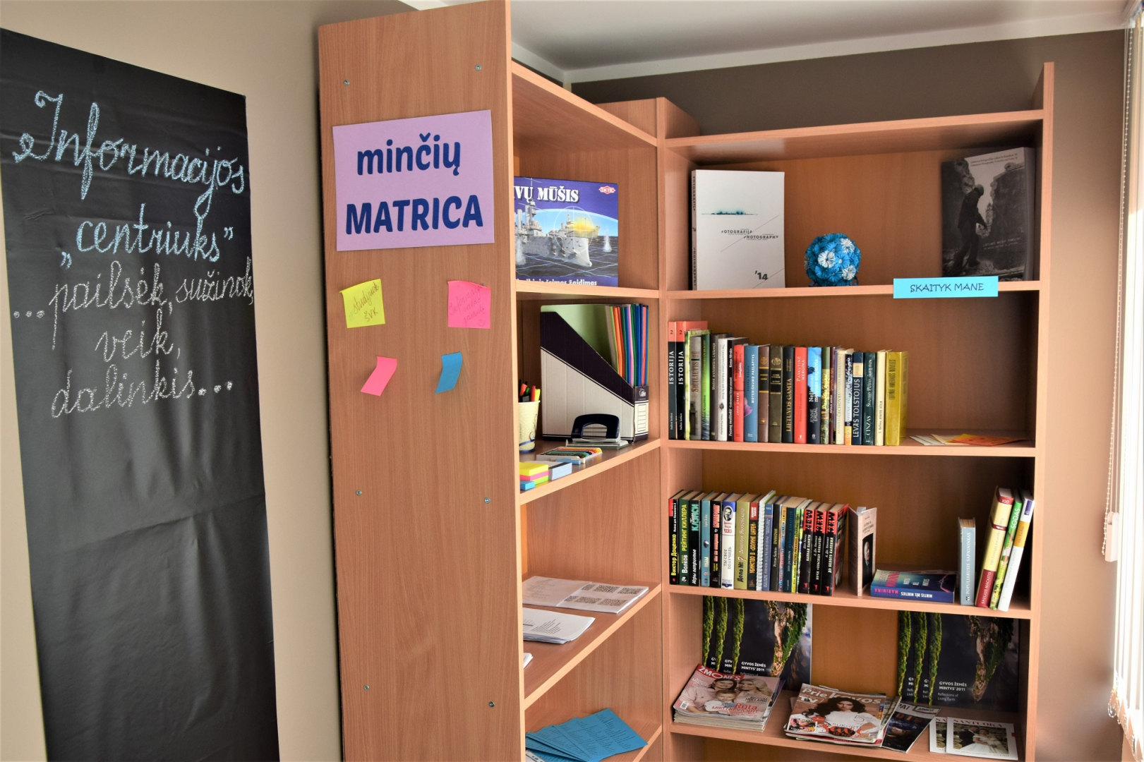Ji unikali tuo, kad čia galima rasti mėgstamos veiklos: minčių ,,Matricoje“ rašyti ir dalintis mintimis, pasiūlymais, skaityti knygas, spręsti kryžiažodžius, spalvinti mandalas, pasiskolinti kanceliarinių priemonių.