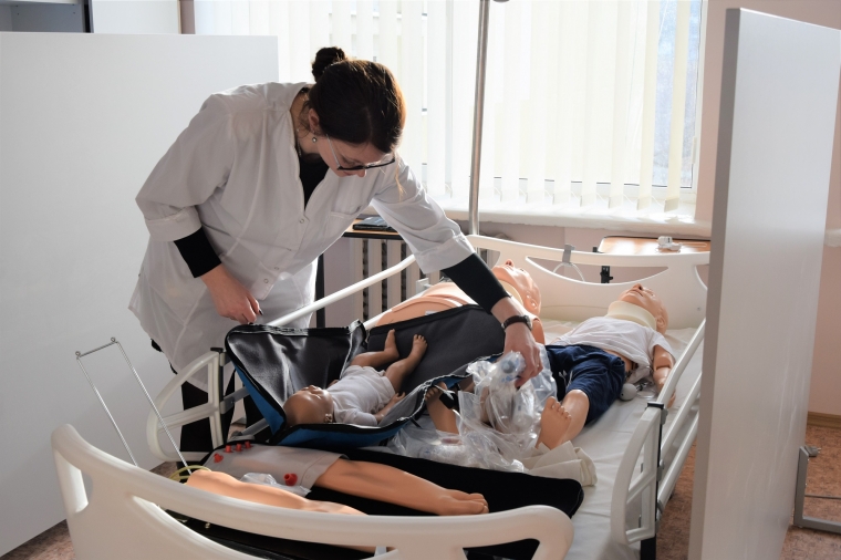 Intensyviosios slaugos simuliacijos kabinete esantys suaugusio žmogaus ūgio ir svorio manekenai, pasitelkus bevielį interneto ryšį ir kiekvienam manekenui priklausančią planšetę, tarsi atgyja – imituojamas kvėpavimas, studentai gali susipažinti su kitomis gyvybinėmis funkcijomis. Dėstytojas gali padidinti tariamo paciento kraujospūdį, nustatyti bronchine astma sergančiam žmogui būdingą kvėpavimą. Stebėdamas, kaip kilnojasi manekeno krūtinės ląsta, klausydamas specifinių iškvėpimui ir įkvėpimui būdingų garsų, matydamas besikeičiančią manekeno veido spalvą studentas turi ne tik įvertinti būklę, nustatyti diagnozę, bet ir imtis atitinkamų veiksmų. Chirurginės slaugos kabinete esantys manekenai yra puiki priemonė mokantis padėti traumas patyrusiems asmenims, su išskirtinai tikroviškai atrodančiais muliažais studentai mokosi siūti žaizdas, daryti injekcijas, atlieka kitas praktines užduotis. Kūno priežiūros kabinetą atnaujinusi įranga labai įvairi – nuo rankšluosčių šildytuvo iki veido priežiūros aparato, skirto odos diagnostikai ir atliekančio daug funkcijų. Kabinetas aprūpintas LED šviesos terapijos kaukėmis su 6 spalvomis, turinčiomis skirtingas funkcijas, limfodrenažinio masažo aparatu ir kitais prietaisais, užtikrinančiais šiuolaikišką kūno priežiūrą.