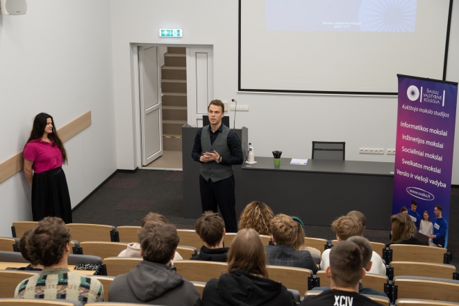 Dėstytojo praktiko Irmanto Pilypo praktiniuose užsiėmimuose moksleiviai susipažino su dirbtinio intelekto ir pokalbių robotų kūrimo technologijomis naudojant Microsoft Copilot Studio platformą. Dalyviai mokėsi kurti virtualius pokalbių robotus (chatbots), integruoti juos į internetinius puslapius, programuoti dialogo scenarijus ir taikyti low-code programavimo principus. Gimnazistai įgijo praktinių įgūdžių dirbti su šiuolaikinėmis vizualinio programavimo aplinkomis, kūrė interaktyvius sprendimus, kurie galėtų būti pritaikyti realių verslo ar švietimo problemų sprendimui. Užsiėmimų dalyviai ne tik išplėtė savo žinias apie dirbtinį intelektą, bet ir suprato, kaip šiuolaikinės technologijos gali tapti prieinamos kūrybiškai jas taikant.