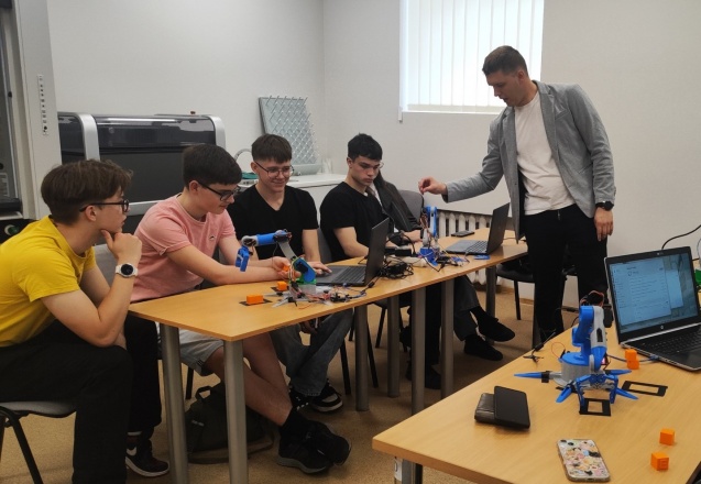 Mokslo darbuotojų dr. Urtės Ciganės ir dr. Justo Cigano vestų užsiėmimų dėmesys sutelktas į projektavimo sritį. Moksleiviai dirbo naudodami Autodesk Fusion programinę įrangą: kūrė individualius kubelių modelius su vardų inicialais, suprojektuoti objektai buvo spausdinami 3D spausdintuvu. Vėliau užsiėmimų dalyviai konstravo ir programiškai valdė roboto rankos prototipą, o jų sukurti kubeliai tapo praktinių užduočių dalimi – robotas turėjo kubelius paimti, perkelti ir išdėlioti. Taip moksleiviai sujungė automatikos, gamybos ir projektavimo žinias, buvo sistemingai ugdomos inžinerinio projektavimo, technologinės kūrybos ir problemų sprendimo kompetencijos.