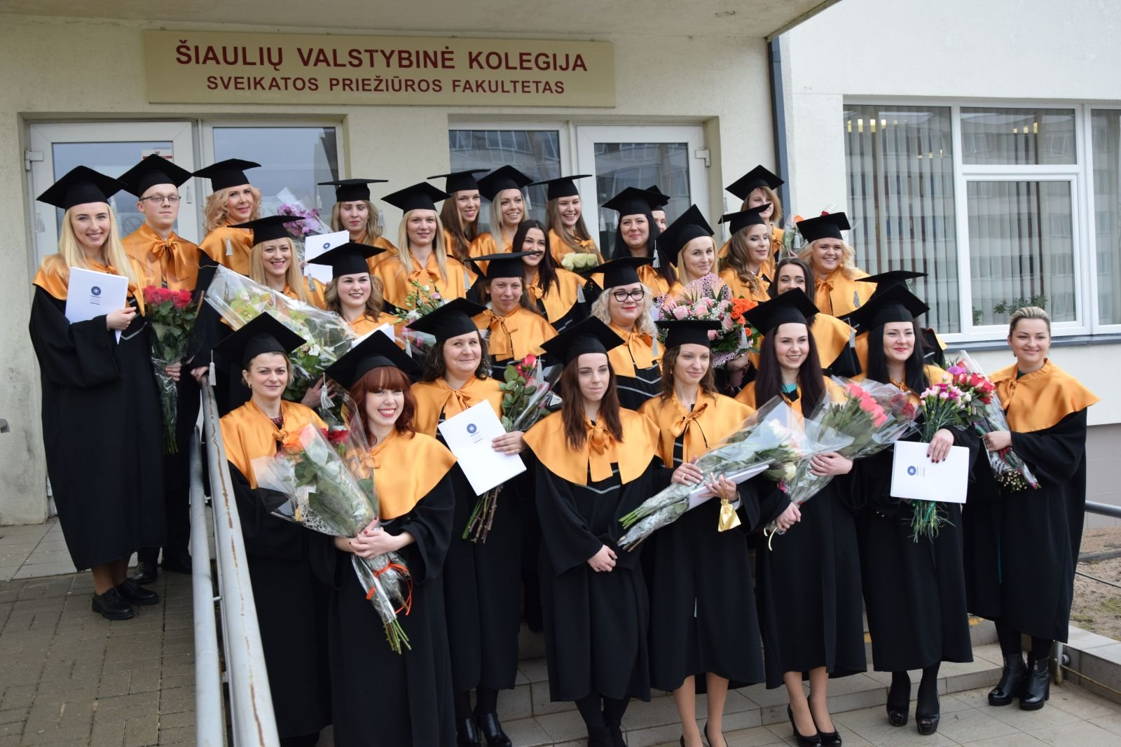 Šiaulių valstybinės kolegijos Sveikatos priežiūros bei Verslo ir technologijų fakultetuose įteikti pirmieji šių metų diplomai: apgynę baigiamuosius darbus, juos gavo pusšimtis Bendrosios praktikos slaugos studijų programos studentų, taip pat 9 studentai, mokęsi Aplinkos apsaugos su gretutine vadybos kryptimi, ir 3 studentai, baigę Transporto logistikos technologijų studijų programą su gretutine vadybos kryptimi.