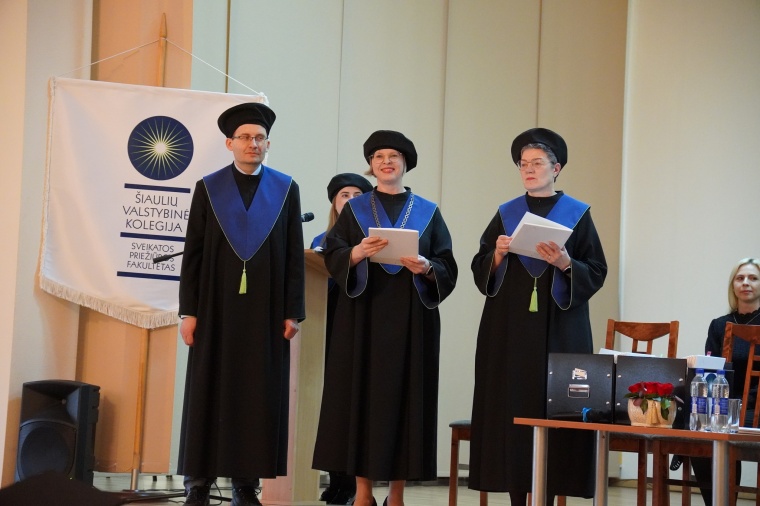Su studijų baigimu absolventus sveikino kolegijos ir fakultetų vadovai, grupių kuratoriai. Į diplomų įteikimo šventę atvyko ir Respublikinės Šiaulių ligoninės direktorius Mindaugas Pauliukas. Jis absolventams linkėjo likti Šiauliuose ir kurti čia savo ateitį, įstaigos vadovas kvietė tapti kolegomis.