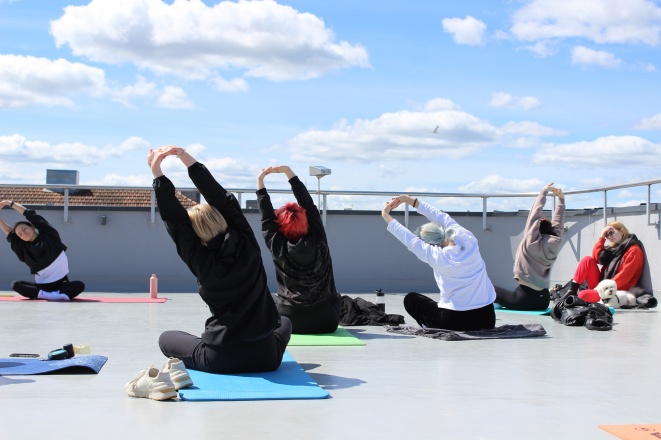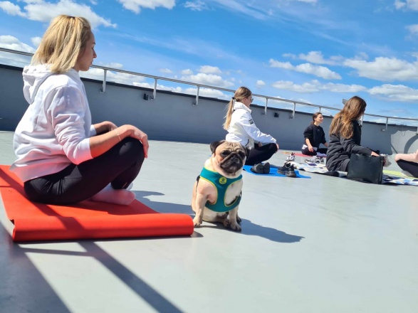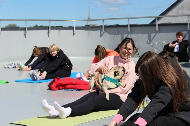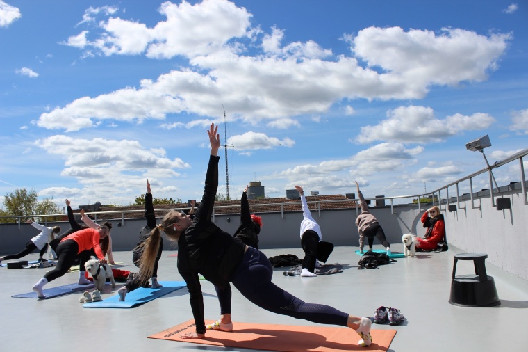 Gegužės 11 d. augintiniai ir jų šeimininkai rinkosi Fotografijos muziejaus stogo terasoje, kur vyko nemokamas jogos su augintiniu užsiėmimas. Užsiėmimą vedė profesionali trenerė Mila Mažeikaitė.