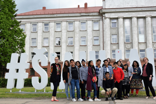 Į Lietuvą iš tolimos šalies atvyko Naujojo Delio Šv. Marko privačios vidurinės mokyklos direktorė ir švietimo įstaigų Indijoje mecenatė Alka Kher, tarptautinių projektų koordinatorė Archona Tyagi bei devyni moksleiviai.