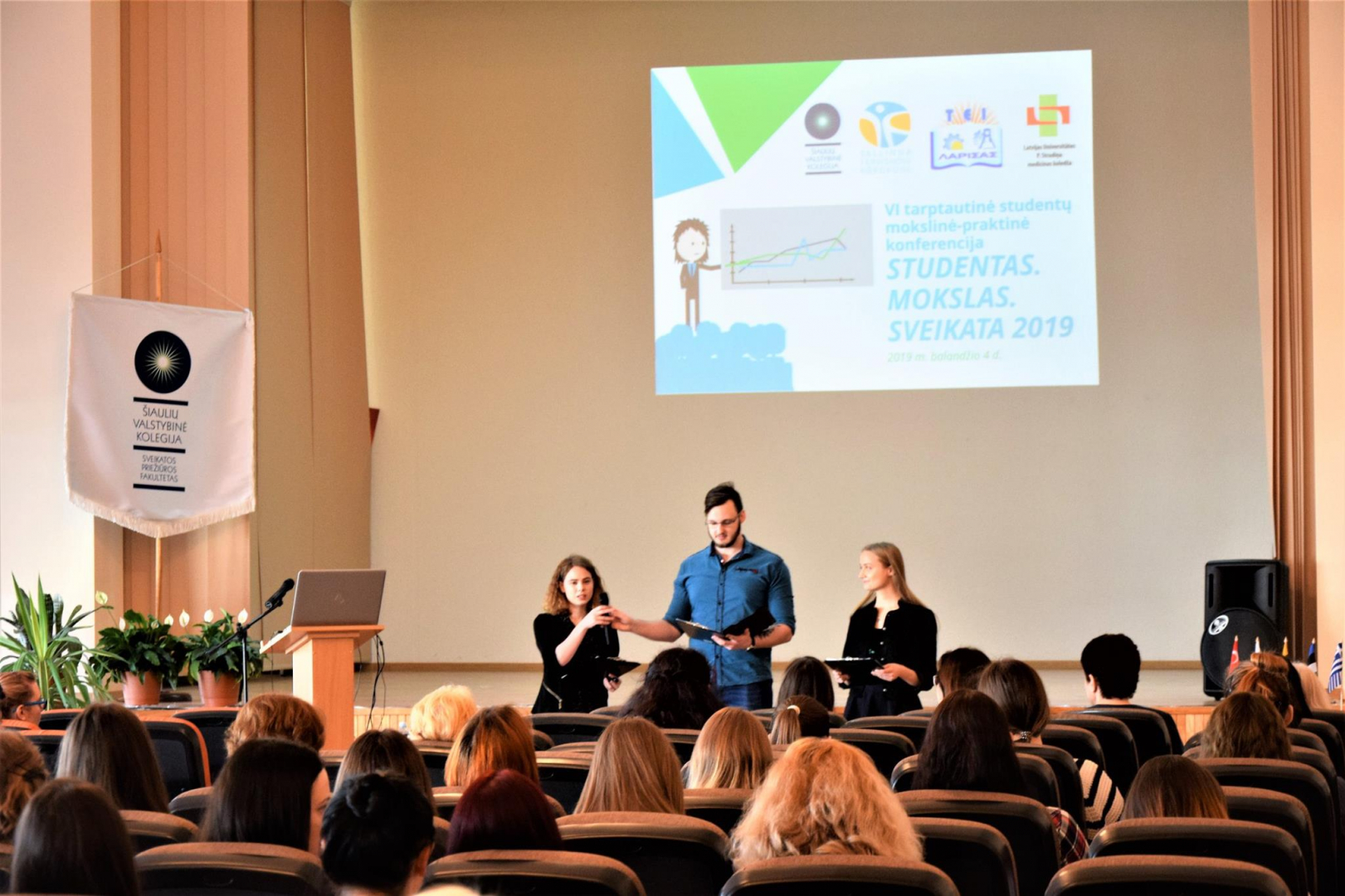 Balandžio 4 d. Šiaulių valstybinės kolegijos Sveikatos priežiūros fakultete vyko jau VI tarptautinė studentų mokslinė-praktinė konferencija „Studentas. Mokslas. Sveikata 2019“, organizuota kartu su Talino sveikatos priežiūros koledžu (Estija), Thessaly technikos institutu (Graikija) ir Latvijos universiteto P. Stradinio medicinos koledžu.