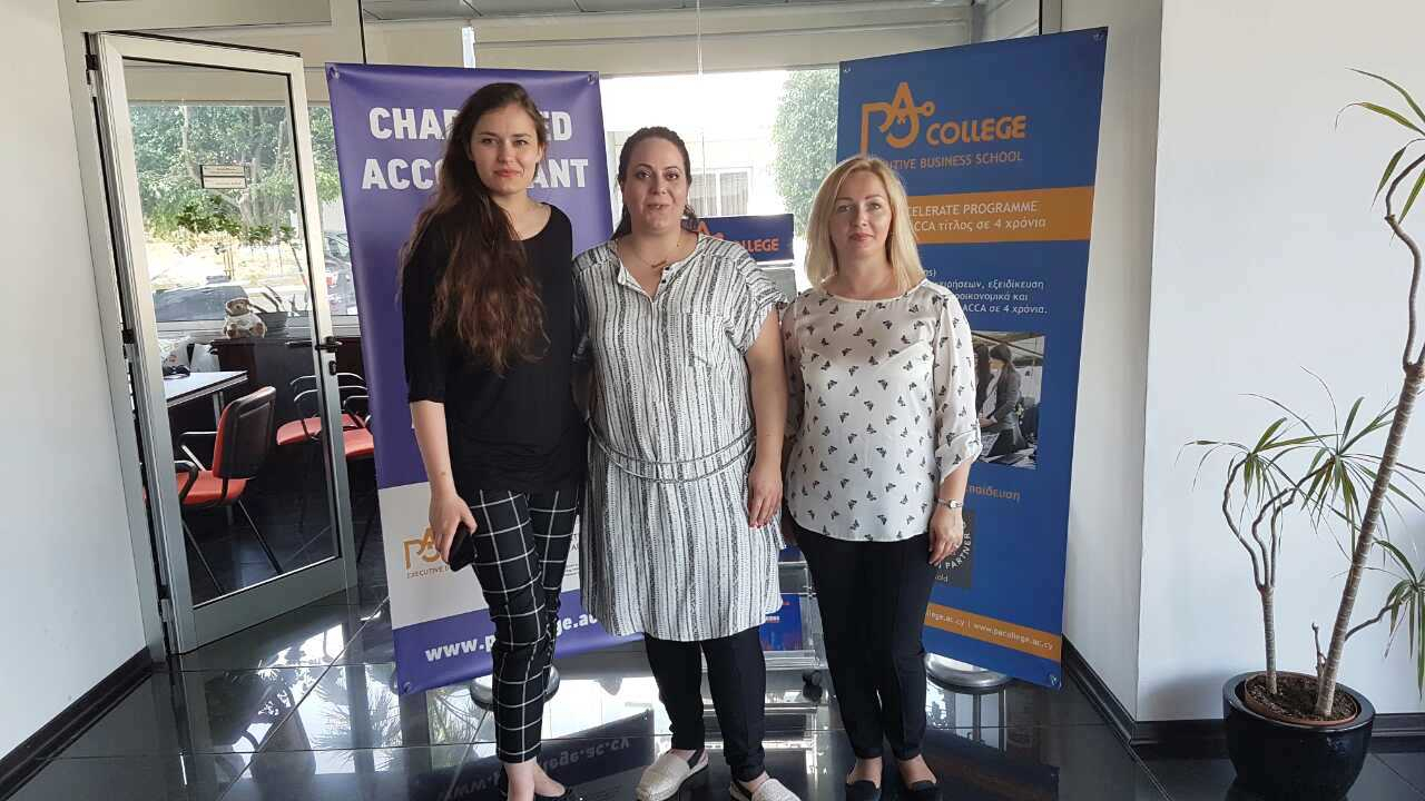Gegužės 23–25 dienomis kolegijos ekonomistė Kristina Gideikienė, Kanceliarijos skyriaus vedėja Audronė Ožalienė bei Tarptautinių ryšių ir projektų valdymo skyriaus koordinatorė Gina Ožekauskaitė pagal Erasmus+ mainų programą lankėsi P. A. College Kipre.