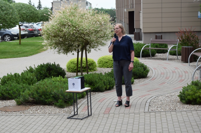 Popietėje aukštosios mokyklos vadovė dr. Lina Tamutienė visai Kolegijos bendruomenei padėkojo už besibaigiančiais studijų metais nuveiktus darbus, vykdomus projektus, iškeltas idėjas, paragino dalintis geromis emocijomis.