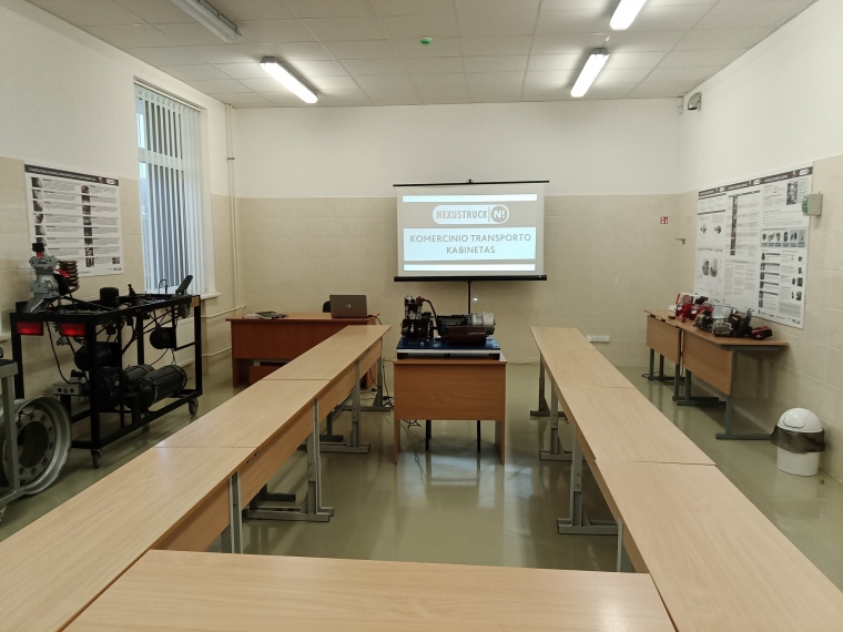Kolegija jau daug metų rengia transporto inžinerijos specialistus, tačiau aukštojoje mokykloje iki šiol buvo mažai stendų, mokomųjų priemonių apie krovininius automobilius, sunkvežimius. Naujajame kabinete yra informacinių plakatų, krovininių automobilių detalių, mazgų, automobilių žibintų demonstracinių stendų. Čia galima pamatyti, kaip atrodo kai kurių automobilių mazgų pjūviai, demonstruojami keli studentų baigiamieji projektai.