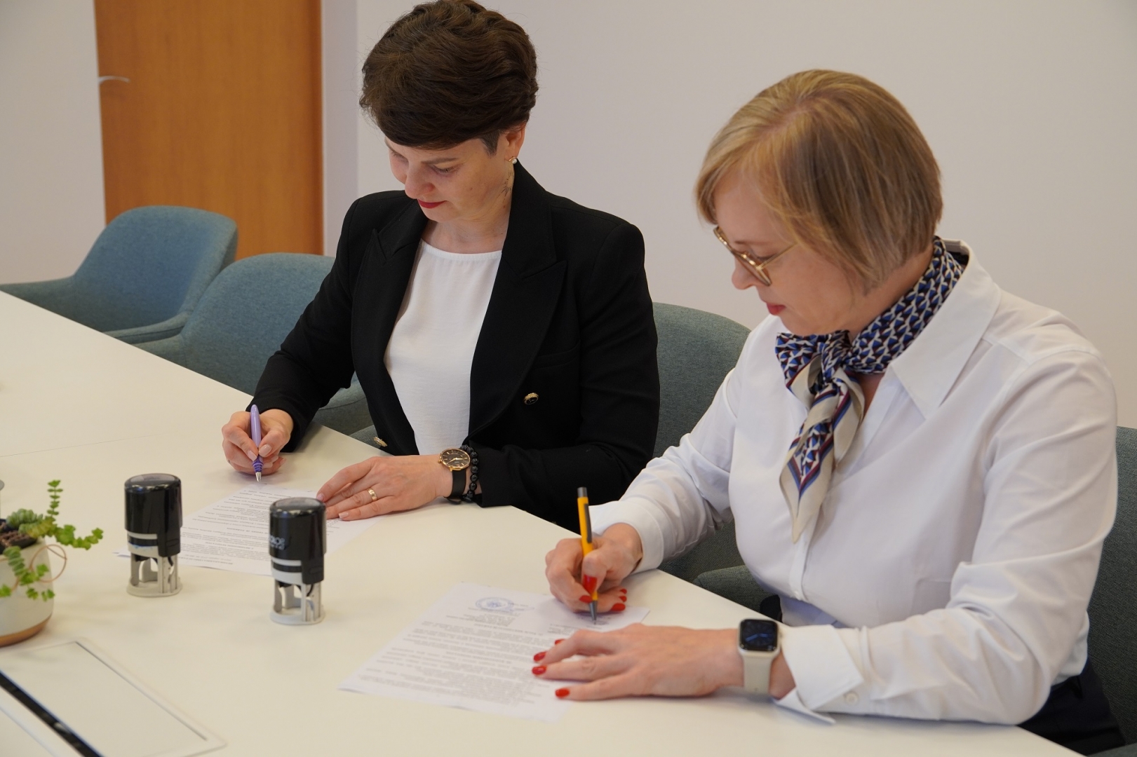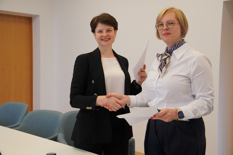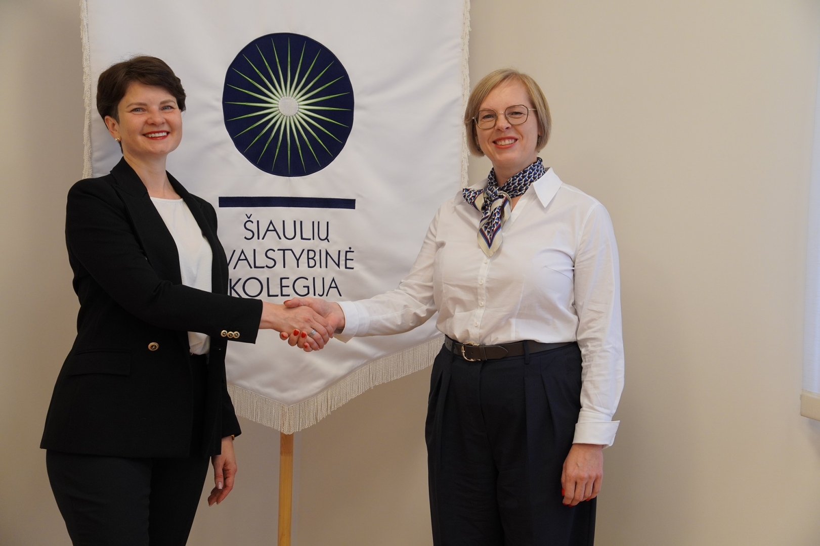 Šiaulių valstybinės kolegijos direktorė dr. Lina Tamutienė ir Šiaulių technologijų mokymo centro direktoriaus pavaduotoja plėtrai, l. e. direktoriaus pareigas Jolita Vengrė oficialiai įtvirtino įstaigų bendradarbiavimo sritis.