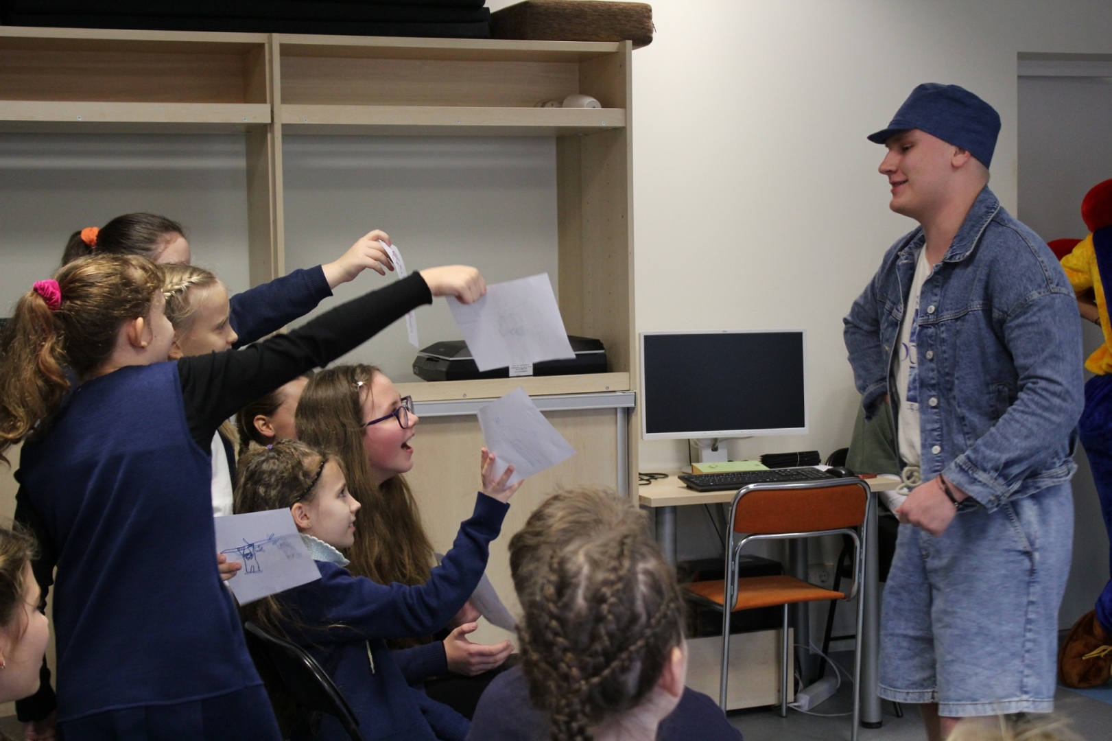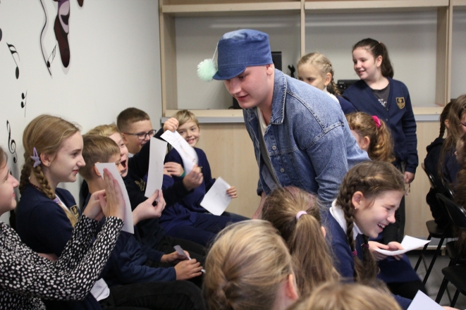 Vaikams ir paaugliams skaityti šiemet siūloma Astridos Lindgren knygą „Emilis iš Lionebergos“. Ši knyga jau daug metų ne tik Lietuvoje, bet ir visame pasaulyje yra viena skaitomiausių vaikų literatūros knygų. OKR 23 grupės studentai Lolita, Justas ir Kajus, persirengę Pepe Ilgakojine, Emiliu ir Karlsonu, žaismingai pristatė pačius žinomiausius Astridos Lindgren sukurtus herojus. Livija, Mindaugas, Eva ir Smiltė supažindino su pačia autore, skaitė ištraukas iš knygos „Emilis iš Lionebergos“, diskutavo su moksleiviais, kas yra išdaiga, ar Emilio poelgiai gali būti vertinami ir kaip geri darbai. Ketvirtokai aktyviai dalyvavo ir patys: piešė Emilį ir vilkatą, atsakė į klausimus, pasakojo apie krečiamas išdaigas.