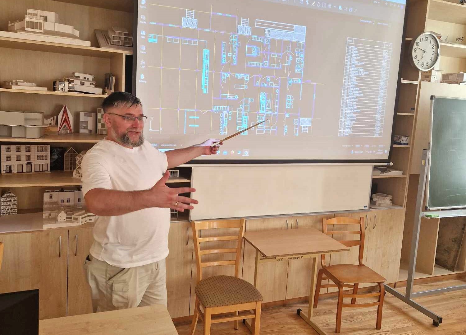 Užsiėmimų metu studentai susipažino su projektavimo metodais, braižė, projektavo savo svajonių namus, rinko inovatyvias, aplinkai draugiškas statybines medžiagas ir jas aprašė. Buvo skaičiuojama, per kiek laiko, įvykus gaisrui, studentai evakuotųsi iš esamos auditorijos, matuoti evakuaciniai keliai.