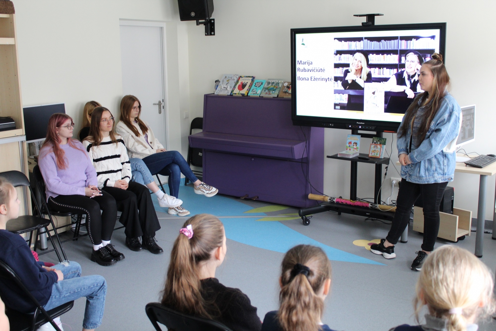 Šiaulių valstybinės kolegijos Organizacijos komunikacijos ir rinkodaros nuolatinių studijų I kurso studentės kartu su grupės kuratore doc. dr. Jurgita Maciene ir „Šaltinėlio“ bibliotekininke Giedre Matusevičiene parengė penkių geriausia metų knyga pretenduojančių tapti knygų pristatymą Vinco Kudirkos progimnazijos trečiokams.