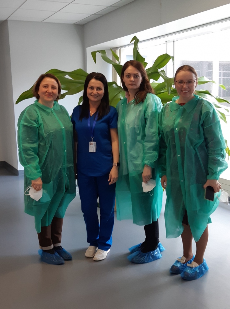 Vizito Rygoje metu buvo susipažinta su programų profesinės veiklos praktikų atlikimo vietomis. Viena didžiausių ir populiariausių studentų praktikos atlikimo vietų yra Rygos Rytų klinikinė universitetinė ligoninė (RAKUS). Ligoninėje lankytasi Neurochirurgijos ir Neurologijos departamentuose, dienos stacionaro centre, kur šio centro vyriausioji slaugos administratorė Jelena Kuznecova pasakojo apie veiklos organizavimo patirtis ir pacientų priežiūros problemas.