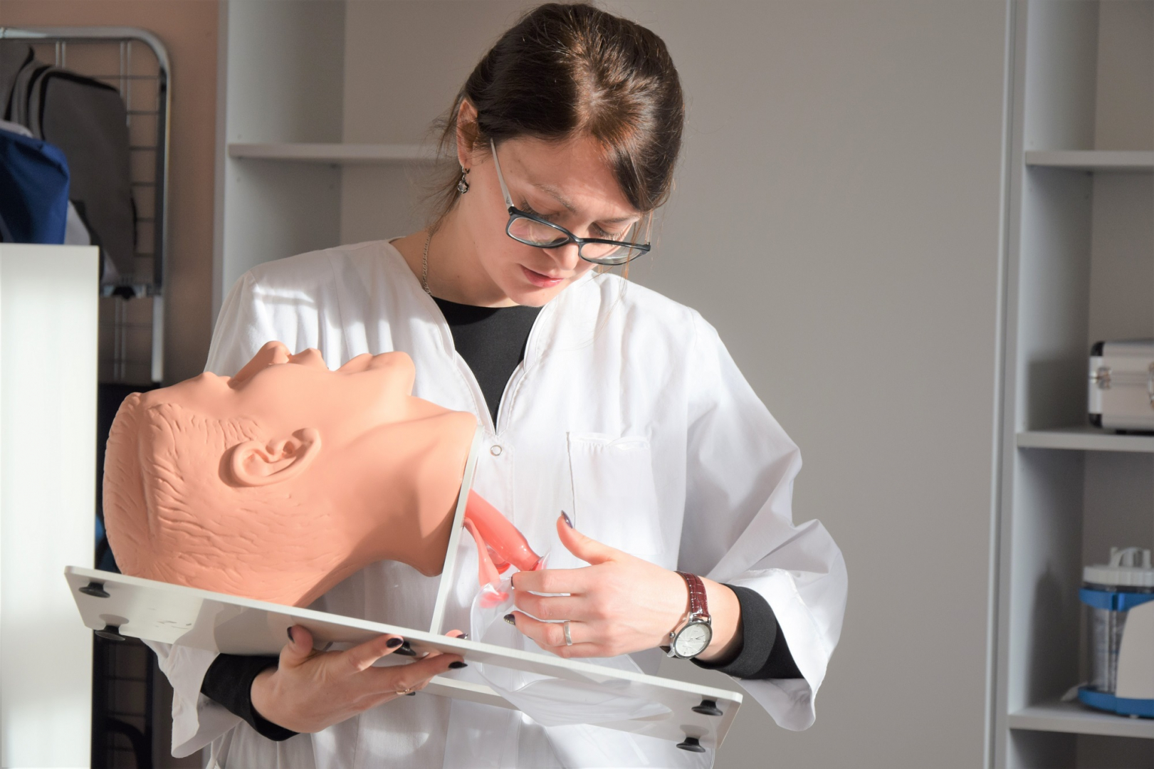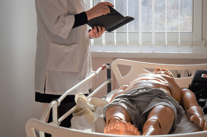 Įėjus į ŠVK Sveikatos priežiūros fakultete esantį bendrosios praktikos slaugos specialistų rengimui skirtą kabinetą iškart dėmesį patraukia suaugusio žmogaus ūgio ir svorio manekenai, pusinis manekenas, skirtas reanimacijai, vaiko manekenas: visi jie valdomi bevieliu interneto ryšiu ir planšete. Šie manekenai nėra vien nejudančios figūros, jie sukurti taip, kad imituotų pagrindinius žmogaus organizmo būklės rodiklius. Dėstytojas planšete modeliuoja norimą situaciją: padidina kraujo spaudimą, padaro taip, kad manekenas kvėpuotų kaip bronchinės astmos paūmėjimą išgyvenantis žmogus, programuoja kvėpavimo dažnį, kuria kitokias aplinkybes, pavyzdžiui, parenka vieną iš ne mažiau kaip 20 galimų skirtingų širdies ritmų. Viskas atrodo labai tikroviškai – matoma ir girdima, kaip ligonis kvėpuoja, gali keistis modernioje lovoje gulinčio žmogaus veido spalva. Studentas turi ne tik suprasti, kas vyksta, bet ir imtis veiksmų, galinčių padėti tariamam pacientui. Manekeno akys atsimerkia ir užsimerkia, jo galva ir kaklas gali lankstytis, tikroviškai atrodo kvėpavimo takai. Dirbtinį kvėpavimą tokiam įsivaizduojamam ligoniui galima atlikti įvairiais būdais, studentai gali pasitelkti defibriliatorių. Jeigu studentas pasirenka tinkamus gaivinimo būdus, jis mato, kaip gerėja žmogaus būklė. Suklydus, pavyzdžiui, neteisingos intubacijos atveju, kai oras patenka į stemplę, galima stebėti, kas atsitinka pacientui.