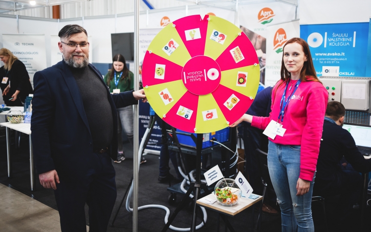 Šiaulių valstybinės kolegijos erdvėje moksleivių laukė laimės ratas, taip pat organizuotas techninių gebėjimų konkursas „Programos sukūrimas programuojamam loginiam valdikliui“. Konkurse per abi renginio dienas dalyvavo daugiau nei 50 moksleivių, o laimėtojais tapo Mantė iš Vilniaus Žirmūnų gimnazijos ir Nojus iš Varėnos Ąžuolo gimnazijos – jiems atiteko aukštosios mokyklos ir rėmėjų įsteigti prizai. Dėkojame konkursą parėmusioms įmonėms „Jupojos technika“ ir „Žemaitijos pienas“.