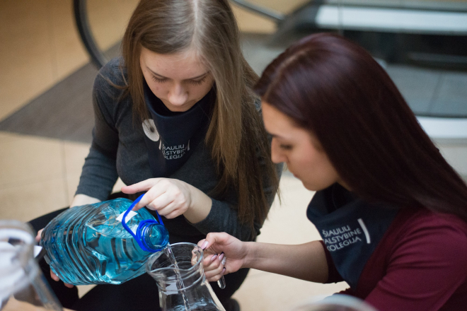Šiaulių valstybinės kolegijos studentai, minėdami Pasaulinę vandens dieną, šiauliečius ir miesto svečius šiemet skatino atkreipti dėmesį į vandens svarbą organizmui, priminė apie geriamojo vandens iš čiaupo kokybę, išskirtinumą ir naudą. Renginio svečiai degustavo trijų skirtingų rūšių geriamojo vandens ir turėjo galimybę nuspręsti, kuris – stalo, negazuotas mineralinis ar Šiaulių vandentiekio – vanduo yra pats skaniausias. Trumpos apklausos rezultatai parodė, kad stalo vanduo skaniausias buvo 22 proc., negazuotas mineralinis vanduo – 34,6 proc., o Šiaulių vandentiekio vanduo labiausiai patiko net 43,4 proc. degustacijos dalyvių. UAB „Šiaulių vandenys“ Vandens tyrimų laboratorijos specialistė pasakojo apie ragautą visų trijų rūšių vandenį, aiškino apie vandentiekio vandens naudą, atsakė į degustacijos dalyvius dominusius klausimus apie Šiaulių miesto ir rajono geriamąjį vandenį.