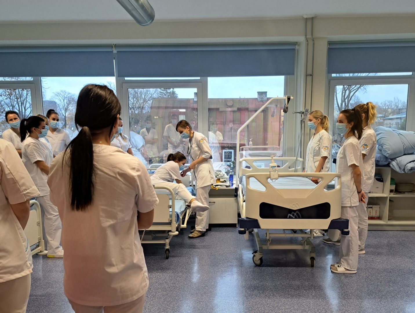 Taip pat vyko pažintinis turas po Talino sveikatos priežiūros kolegiją. Susipažinta su materialine baze, kuri apima nemažą kolegijos dalį. Aukštojoje mokykloje imituojamas realus stacionaras nuo registratūros iki paciento palatos su modernia simuliacine įranga: akušerinės ir vaiko sveikatos priežiūros, terapinės ir chirurginės slaugos, intensyvios slaugos ir skubios medicinos pagalbos. Skubios medicinos pagalbos mokymui naudojamas reanimobilis, turintis visapusišką realią paciento gyvybinių veiklų palaikymo įrangą ir priemones.