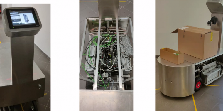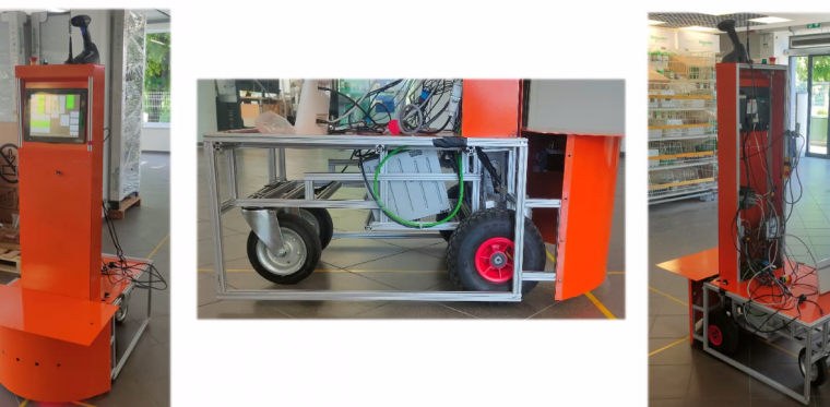 „Logistinis robotas V3“. Projektą įgyvendino Inžinerijos mokslų katedros lektorius Marius Kernagis, Gamybos inžinerijos programos studentai Jonas Liaudanskas ir Modestas Rudys.