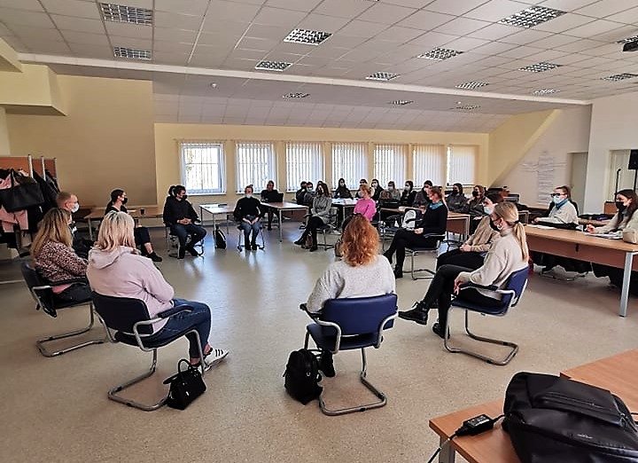 Įgyvendinant projekto veiklas, Šiaulių valstybinės kolegijos studentės Rugilė Anzaitė, Eglė Keliuotytė, Raminta Mikalauskaitė, Kamile Jatkauskaitė, Greta Strelkauskaitė ir Monika Žukauskaitė su ŠVK dėstytoja doc. dr. Ligita Šalkauskiene spalio 7 d. dalyvavo mokymuose Klaipėdoje, kur su kitų aukštųjų mokyklų studentais mokėsi taikyti praktinį „Focus“ grupės metodą.