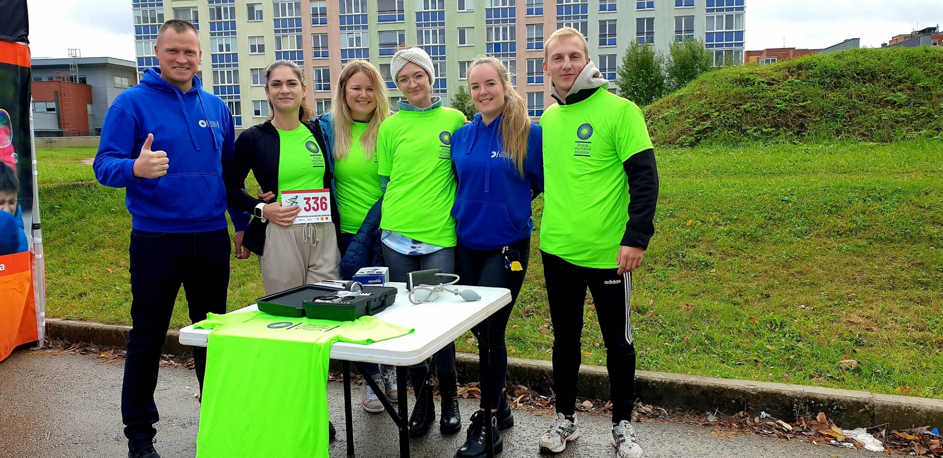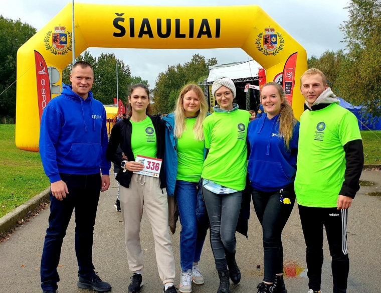 Šiaulių valstybinės kolegijos Reabilitacijos katedros lektorius Vytautas Padgureckas su trečio kurso Kineziterapijos studijų programos studentais Martyna Lideikaite, Rasa Vaitekiene, Faustina Urbanavičiūte, Egle Butkiene ir Juliumi Petrausku tapo šventės dalimi. Bėgimo dalyviams mūsų aukštosios mokyklos komanda prieš startą matavo kraujo spaudimą, dinamometru vertino plaštakos ir rankos pirštų raumenų jėgą, modifikuotos žvaigždės testu vertino dinaminį kūno stabilumą, neurologiniu plaktuku tikrino refleksus ir FMS testu įvertino kūno judesio stereotipus.