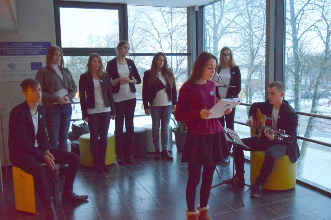Centrinių kolegijos rūmų galerijoje susirinkę neužmirštuolėmis pasipuošę bendruomenės nariai prisiminė 1991 metų sausio aukas, paklausė studentės skaitomo prasmingo teksto apie aukų pareikalavusias sausio dienas, prisiminė žuvusiųjų pavardes. Dvidešimt šešiomis žvakutėmis, simbolizuojančiomis nuo kruvinųjų įvykių praėjusius metus, apšviestas žodis LAISVĖ paskatino ramiai apmąstyti šios dienos prasmę. Juk 1991-ųjų sausis kelia dvejopus jausmus – sielvartas dėl tų, kurie žuvo, sumišęs su pasididžiavimu dėl žmonių, kurie stojo prieš tankus, ginklus ir brutalią jėgą, turėdami tikslą apginti svarbiausią vertybę – laisvę. Renginyje nuskambėjusios „Studijozų“ atliekamos dainos visiems – ir tiems, kurie gimė jau po 1991 sausio, ir tų dienų liudininkams – priminė daugiau nei dviejų dešimtmečių senumo įvykius ir tuo metu išgyventas emocijas.