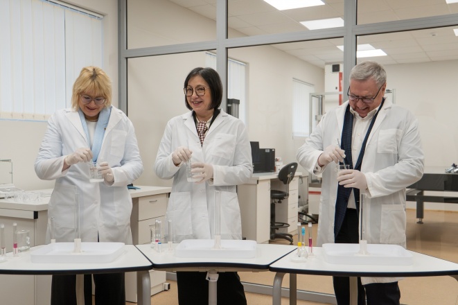 Ministrės vizito dieną laboratorijoje atliktas pirmasis eksperimentas, simbolizuojantis laboratorijos „įjungimą“ – praktinės veiklos startą – jį atlikti pakviesta Švietimo, mokslo ir sporto ministrė Raminta Popovienė, Šiaulių pramonininkų asociacijos viceprezidentas, Šiaulių valstybinės kolegijos tarybos narys Rolandas Gabrielaitis ir Seimo narė Roma Janušonienė.