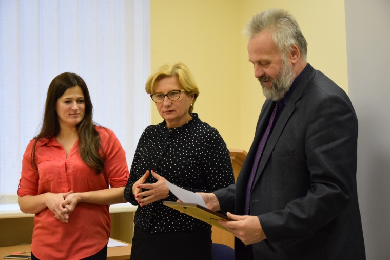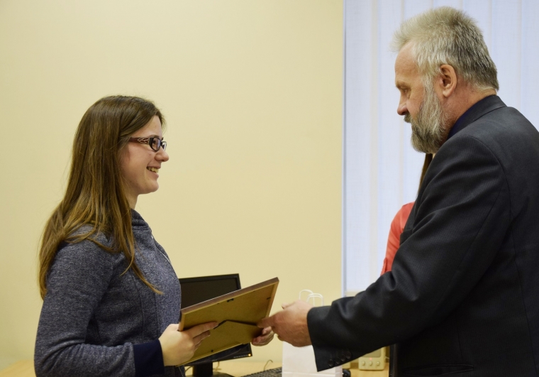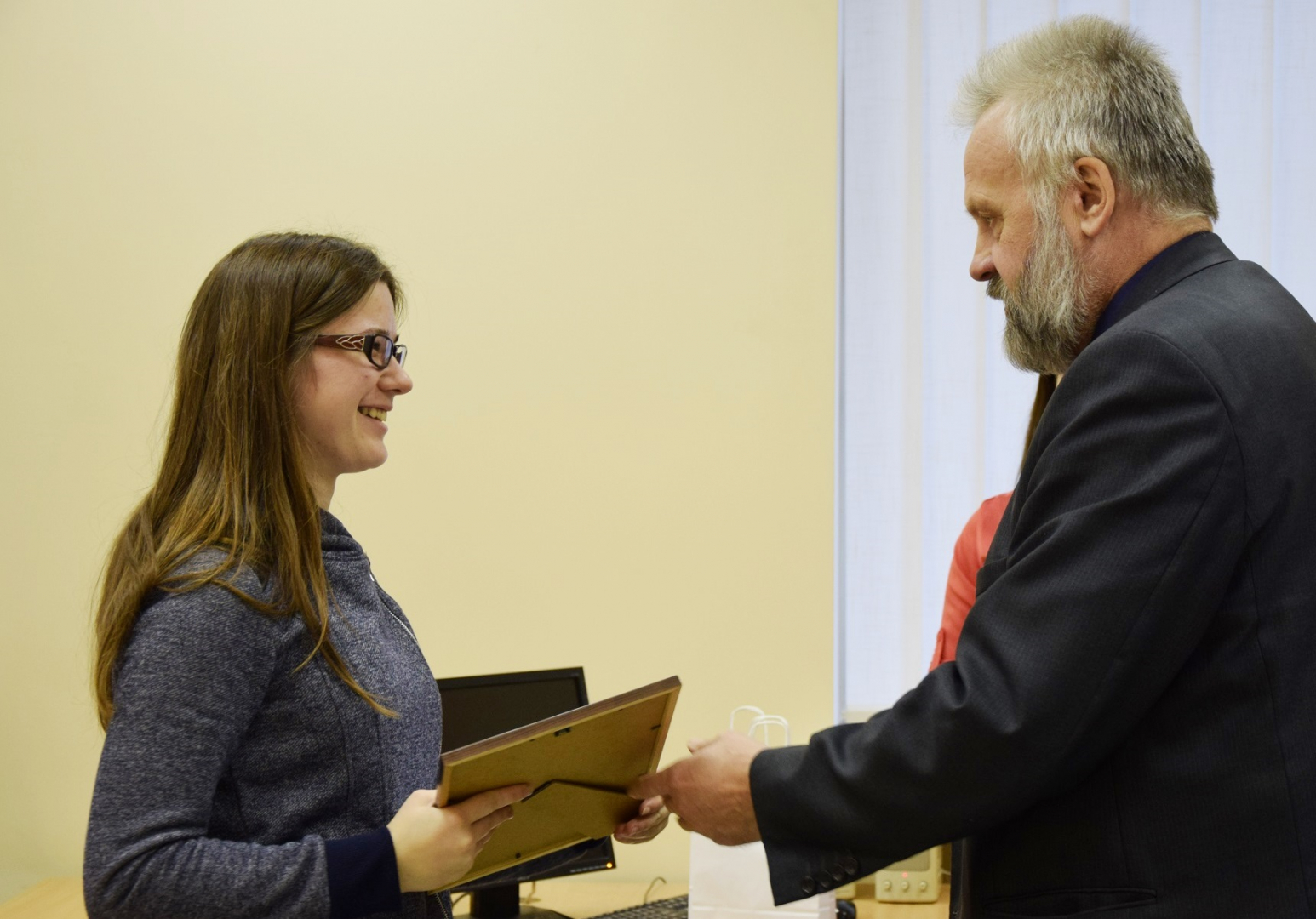 Nugalėtojus pasveikino, diplomus įteikė ir vienkartines stipendijas skyrė Verslo ir technologijų fakulteto dekanas S. Palepšaitis ir prodekanė V. Latvėnienė.