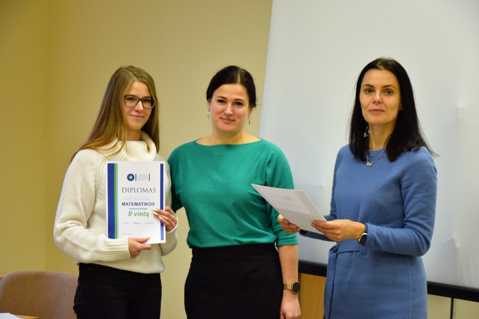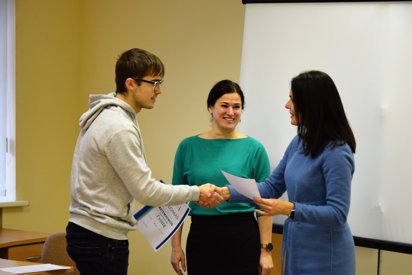 Nugalėtojus pasveikino, diplomus įteikė ir vienkartines stipendijas skyrė Verslo ir technologijų fakulteto dekanė dr. Ingrida Vaičiulytė ir Informatikos mokslų katedros profesorė dr. Renata Macaitienė.