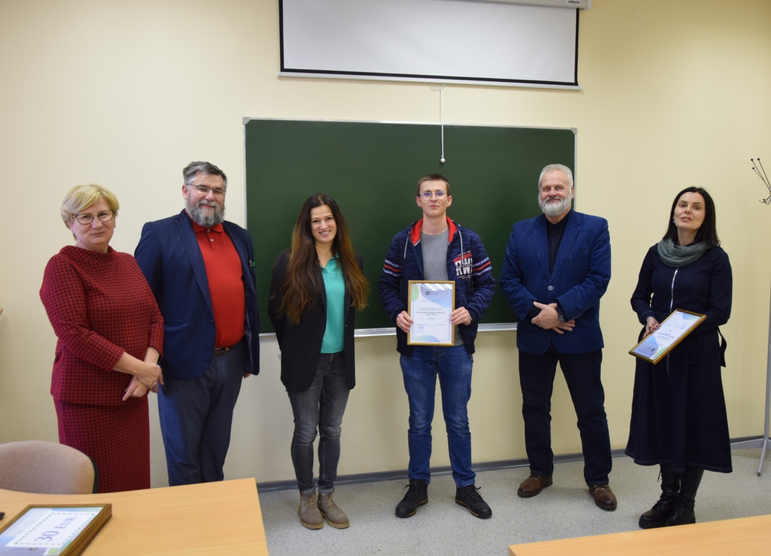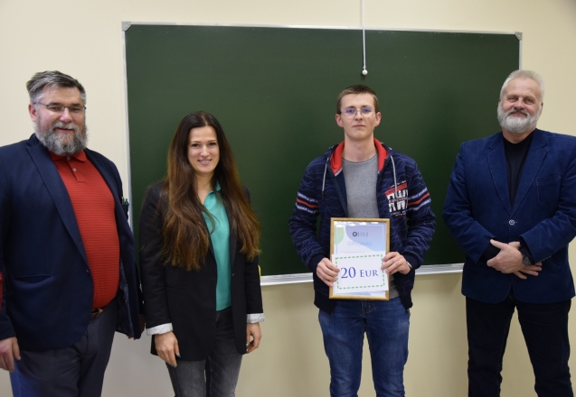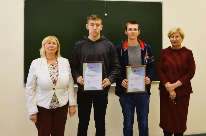 Nugalėtojus pasveikino, diplomus įteikė ir vienkartines stipendijas skyrė Verslo ir technologijų fakulteto dekanė doc. dr. Ingrida Vaičiulytė.