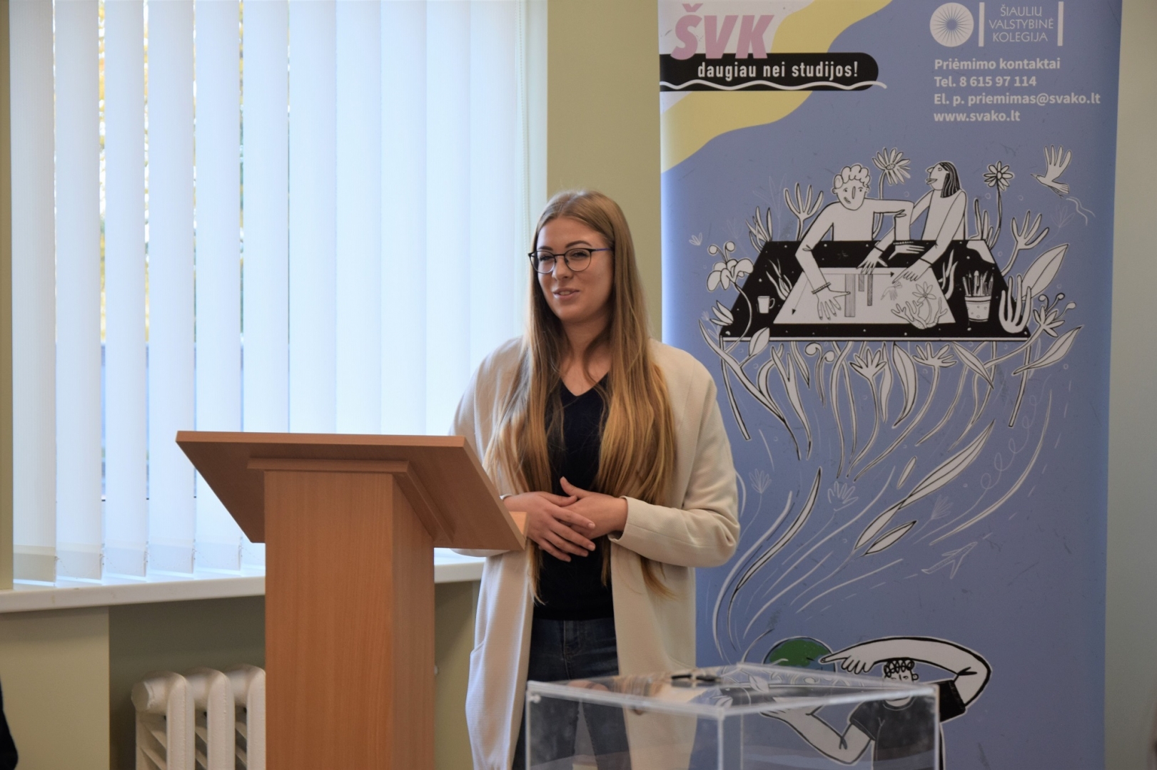Verslo ir technologijų fakulteto Studentų atstovybės pirmininke tapo Aplinkos apsaugos studijų programos studentė Gustė Grigaitytė.