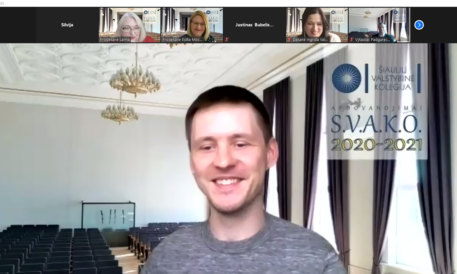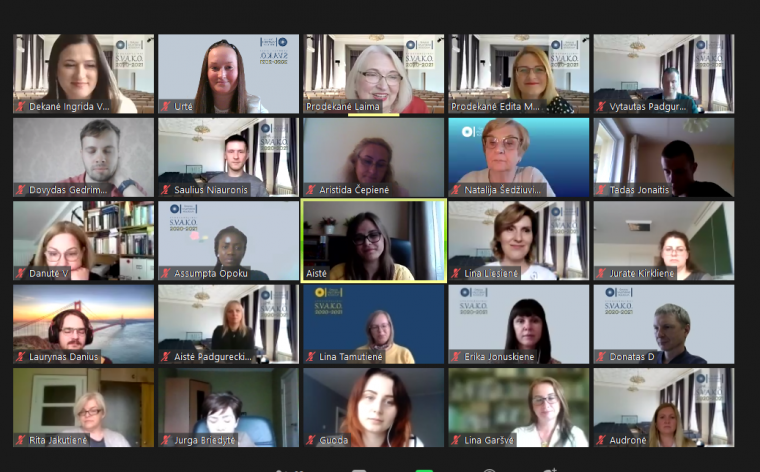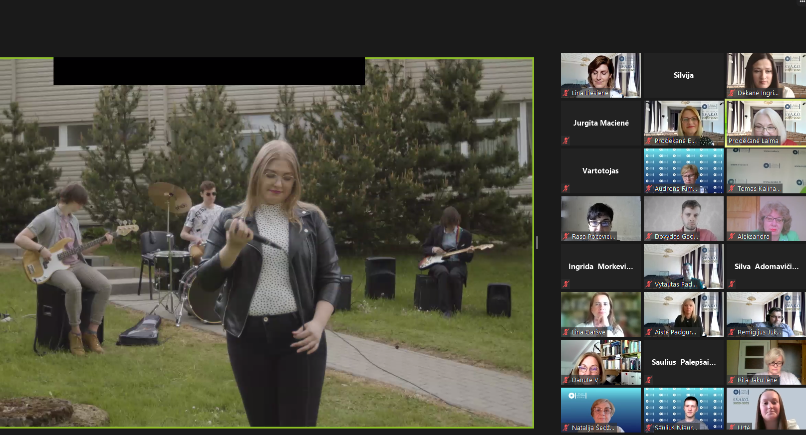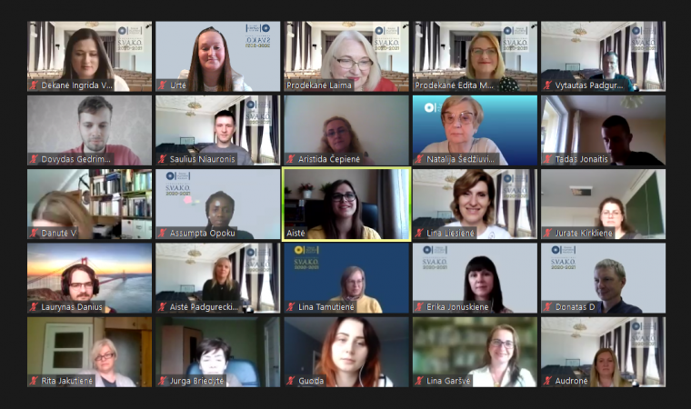 Renginyje netrūko nuoširdaus juoko, gražių palinkėjimų kolegoms ir studentams, jaukių momentų – apdovanojimai subūrė bendruomenės narius bent nuotoliniu būdu pasidžiaugti bendryste, pasiektais darbais, dar kartą išgyventi įsimintiniausias jau besibaigiančių studijų metų akimirkas.