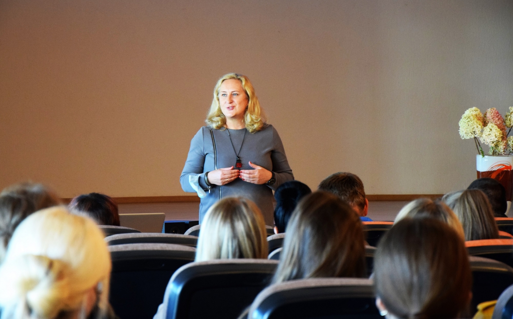Po dirbtuvių renginys persikėlė į fakulteto aktų salę. Sveikatos priežiūros fakulteto dekanė Ginta Gerikaitė visus pasveikino su profesine švente. Fakulteto vadovė džiaugėsi, kad šios profesijos svarbai kasmet skiriamas vis didesnis dėmesys. Programos dėstytojus G. Gerikaitė apibūdino kaip šiandienos profesijos kūrėjus, dedančius pamatus ateities specialistams. Fakulteto vadovė džiaugėsi studentų – būsimųjų specialistų aktyvumu, gebėjimu pajausti profesijos reikšmę ir ją skleisti visuomenėje.