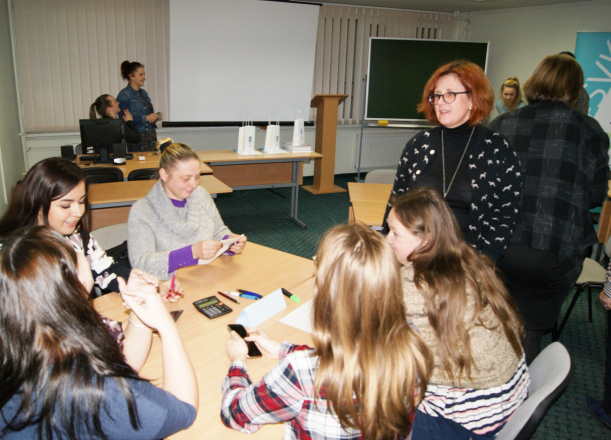 Susirinkusiuosius į renginį pasveikino Verslo ir apskaitos katedros dėstytoja Alma Prėskienienė. Ji papasakojo apie sąvokos apskaita istoriją, atskleidė, kodėl minima Buhalterių diena. Pasak dėstytojos, užsienyje labiau linkstama apskaitą laikyti menu, Lietuvoje – mokslu.